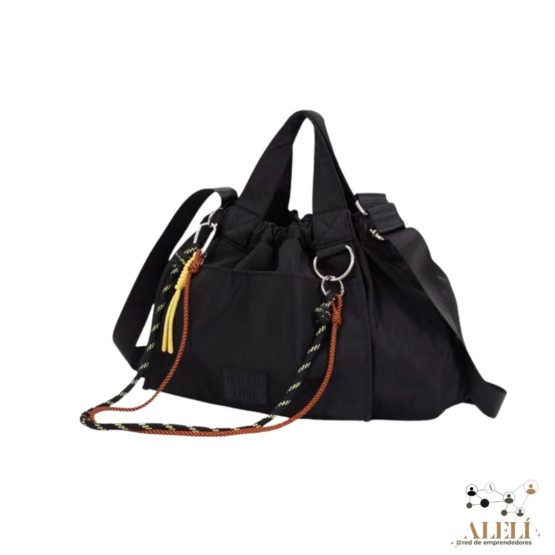 -Contiene: Un bolsillo principal con bolsillo interno organizador, un bolsillo frontal, una tira regulable y una tira desmontable.