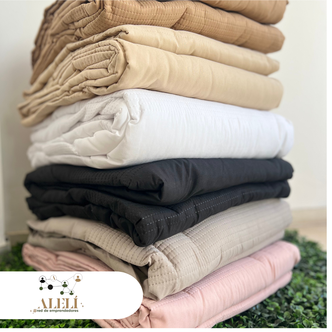 Cubrecama / Colcha ligera y elegante diseñada para vestir camas grandes. Su confección con tejido matelaseado aporta una textura acolchada y sofisticada que combina funcionalidad y diseño decorativo.