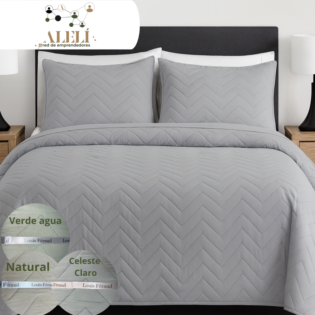 Fabricado en materiales suaves y livianos, es ideal para usar durante todo el año, incluye dos fundas de almohadón a juego, permitiendo lograr un conjunto equilibrado y prolijo.
