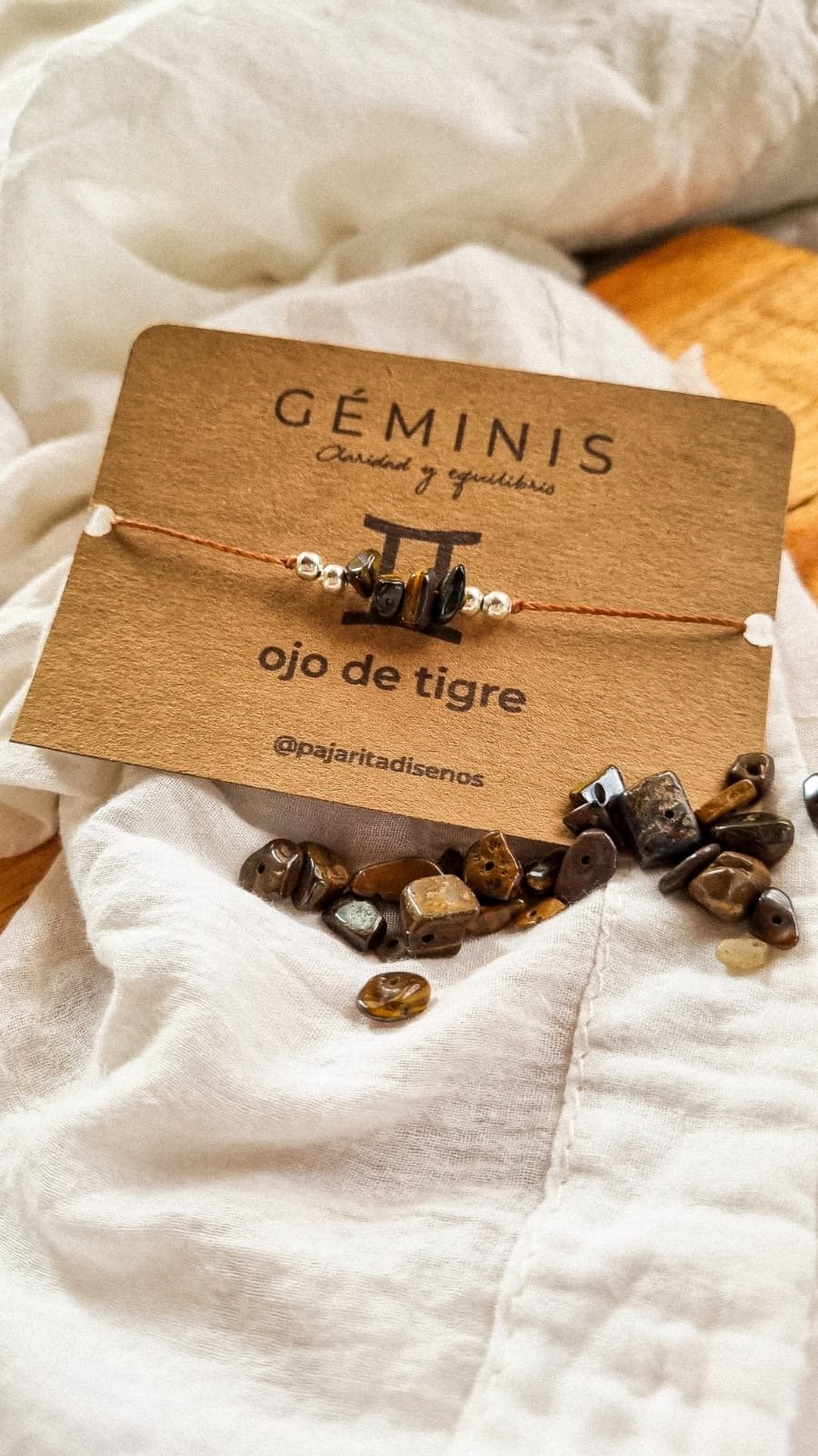 Pulsera energética de signos del zodíaco, hilo encerado y piedras naturales.