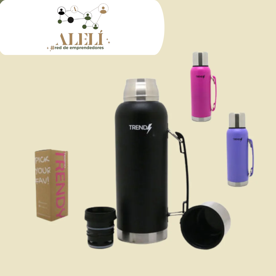 Termo Trendy. Medidas: 33cm de largo X 9cm de profundidad. Capacidad: 1000 ml.